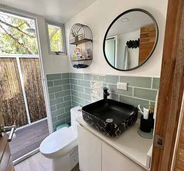 Sandy Wheels. Build 2024. Started in 2020 as a up cycling project by a famous Costa Rican artist and architect, turned into a modern and beautiful tiny house. The roof is lifted and the space feels huge and in between breathtaking nature and unforgettable adventures.